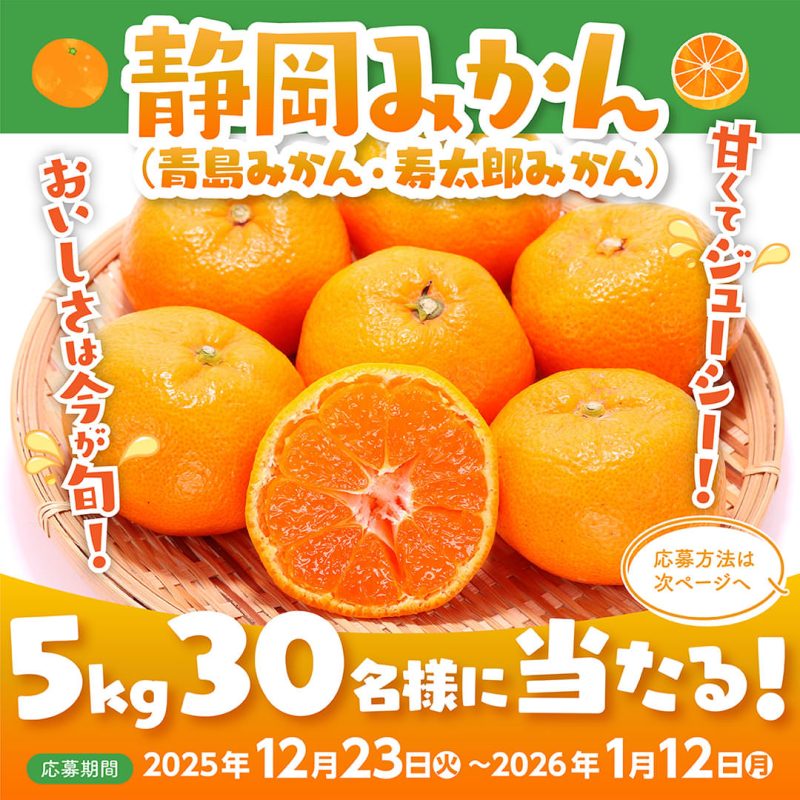 フォロー&いいねで、静岡みかん(青島みかんもしくは寿太郎みかん)が5kg合計30名様に当たる🎁
